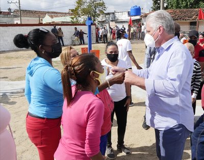 Díaz-Canel pidió a los vecinos hacer control popular, “que todo lo que se propuso y en lo que se está trabajando, ustedes lo controlen, para que los pocos recursos que tenemos se utilicen bien, para que no haya desvíos, para que llenemos de belleza la comunidad".