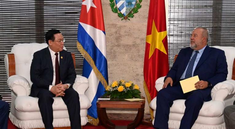 El primer ministro de Cuba, Manuel Marrero, sostuvo hoy un encuentro con el presidente de la Asamblea Nacional de Vietnam, Vuong Dinh Hue, quien realiza una visita oficial a esta nación caribeña.