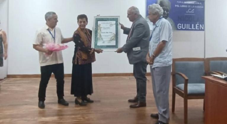 La historiadora e investigadora Francisca López Civeira recibió hoy el Premio Nacional de Ciencias Sociales y Humanísticas del año 2022, en el contexto de la XXXI Feria Internacional del Libro de La Habana.
