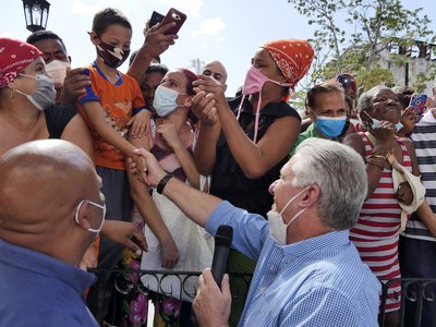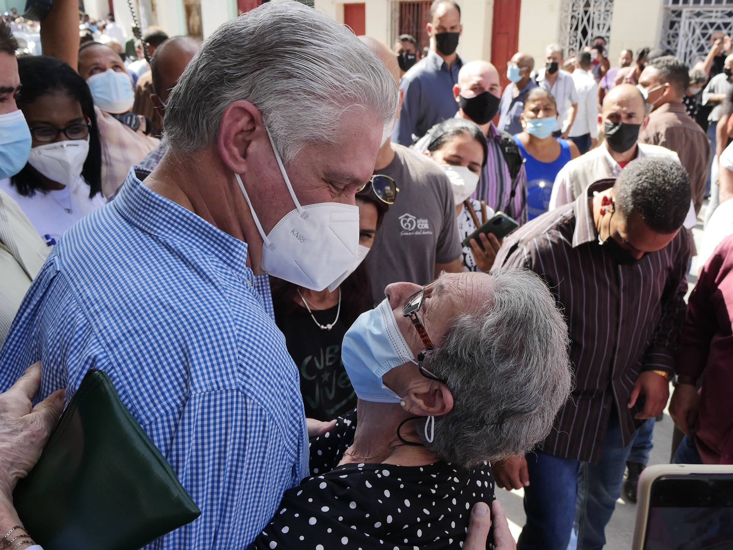 «Díaz-Canel, creemos en usted», gritaron desde una acera. A lo que él respondió: «Y yo en ustedes». Siguió camino el mandatario y se detuvo ante el monumento a los mártires de Regla, y también ante la tarja donde puede leerse: «Regla, 1836-1996. A los africanos que en el 1836 fundaron en este pueblo la Sociedad Secreta Abacuá».