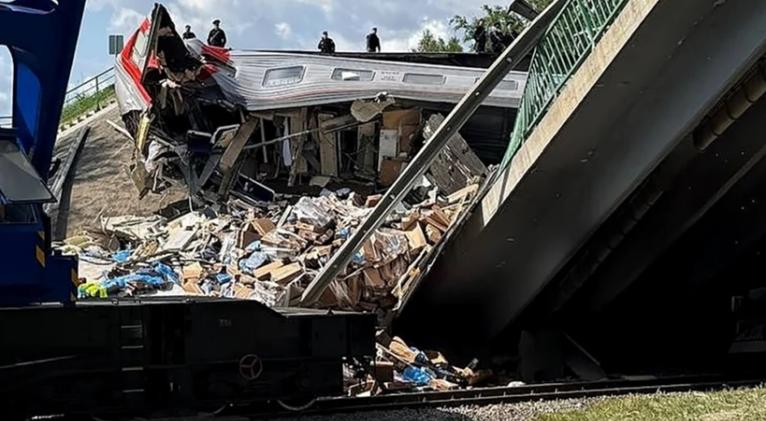 Los escombros cayeron sobre el tren de pasajeros número 86, que circulaba por debajo en la ruta Klimov-Moscú y transportaba a más de 300 personas.