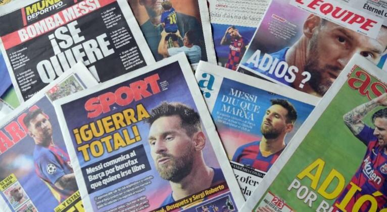 “La bomba Messi: ¡Se quiere ir!”, exclamó el diario deportivo catalán Mundo Deportivo con una foto de Messi de espaldas y la cabeza agachada. El también catalán Sport evocó una “¡Guerra total!” entre el fenómeno argentino y el club, juntos desde hace 20 años.