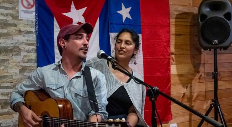 Heredero de los grandes trovadores, como Silvio Rodríguez y Pablo Milanés, el joven músico y compositor se presentó en el K´runga Restobar, donde compartió escenario con la cantora chilena Fabiola Sheihing, en una noche de solidaridad con Cuba.