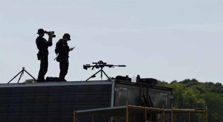 Tiradores de precisión del Servicio Secreto, responsables de proteger a altas figuras políticas estadounidenses, vigilan la zona cuando el presidente Joe Biden llega al puerto de Baltimore, Maryland, el 29 de octubre de 2024. JEFF KOWALSKY / AFP