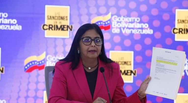 La vicepresidenta de Venezuela, Delcy Rodríguez, denunció este jueves que las últimas cuatro cuotas de pago que hizo su país al mecanismo Covax para adquirir vacunas contra el coronavirus, por un monto superior a los 10 millones de dólares, han sido bloqueadas por el banco suizo UBS.