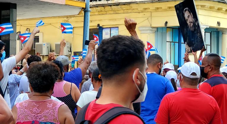 “Convocamos a todos los revolucionarios a salir a las calles a defender la Revolución en todos los lugares”, afirmó el mandatario. Así lo hicieron cientos de capitalinos en las calles de Centro Habana, mujeres y hombres, jóvenes y adultos, coreando las consignas “Yo soy Fidel”, “Viva la Revolución”, “Arriba Díaz-Canel”, “Abajo los mercenarios”, “Abajo los vende patria”.