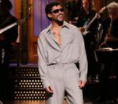 Esta imagen publicada por NBC muestra al presentador Bad Bunny durante su monólogo en "Saturday Night Live" en Nueva York el sábado 4 de octubre de 2025. (Will Heath/NBC via AP)