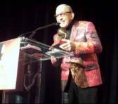 Una imagen del artista de efectos especiales Carlo Rambaldi y del alienígena "E.T.", proyectada en el vídeo en memoria de los fallecidos, durante la gala de los Óscar, el 24 de febrero de 2013 en Hollywood (Kevin Winter) (Kevin Winter/Getty Images North America/Getty Images via AFP)