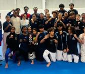 Cubanos en Francia junto a varios de quienes le colaboraron. Foto: Cortesía Federación Cubana de Taekwondo