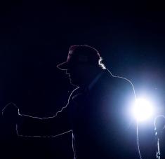 El presidente de los Estados Unidos, Donald Trump, baila después de hablar durante un mitin Make America Great Again en el aeropuerto Richard B. Russell en Roma, Georgia, ayer 1 de noviembre de 2020. Foto AFP