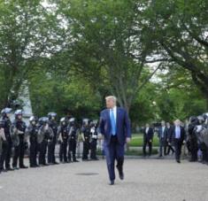 Manifestantes de Black Lives Matter levantan el puño al paso de una caravana en respaldo al presidente Donald Trump ayer en un vecindario de Los Ángeles. Foto Afp