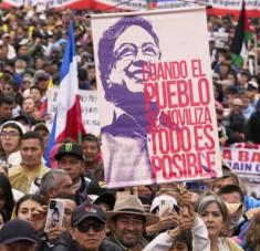 Simpatizantes del presidente Gustavo Petro se reúnen durante una marcha que convocó para apoyar sus propuestas de reforma laboral y de salud, que han luchado por ser aprobadas por los legisladores, frente al Congreso en Bogotá, Colombia, el martes 18 de marzo de 2025. AP - Fernando Vergara
