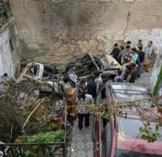 Habitantes y vecinos de una casa observan, el 30 de agosto de 2021, los restos de un coche destruido presuntamente por un ataque de dron estadounidense en Kabul que, según uno de los residentes, mató a diez miembros de una familia. Foto: afp_tickers