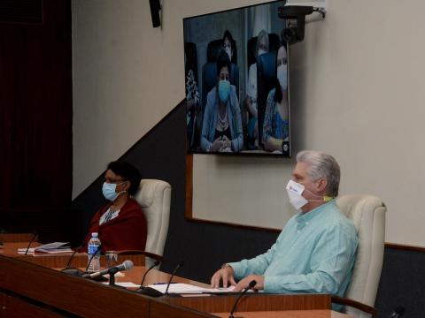La Habana, Cuba.- La certeza de que las medidas del gobierno nos conducen hoy por un escenario más favorable en el enfrentamiento a la COVID 19 y que no puede haber espacio para el exceso de confianza, quedó ratificada en la jornada de este jueves en la que la que el presidente Miguel Diaz-Canel intercambió, como ya es habitual, con un grupo de expertos y científicos que acompañan al país en esta batalla.
