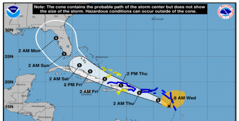 Si gana fuerza en el Caribe oriental, el potencial ciclón nueve de la actual temporada de huracanes del océano Atlántico, podría convertirse en la tormenta tropical Isaías, cuya trayectoria larga está prevista entre cinco y 10 días que podría incluir el sur de la Florida.