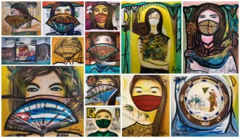 “Como artista no podía eludir esa realidad. Empecé por un cuadro pequeño, luego el nasobuco se transformó en abanico y reveló el diapasón del paisaje cubano. En ese adorno puede aparecer un momento crepuscular o una noche estrellada. Igualmente sustituye, de manera artística, al cubrebocas”, afirmó al respecto Flora Fong en entrevista con Prensa Latina.