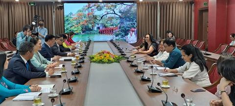 La delegación de la FMC encabezada por Amarelle llegó aquí el jueves último y viene desarrollando un intenso programa de trabajo en Vietnam, primera etapa de una gira que las llevará también a las vecinas Laos y Camboya.