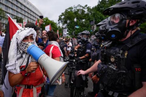 Miles de manifestantes marcharon hacia Washington, coreando “Palestina libre, libre”, mientras algunos trataban de bloquear las calles antes del discurso de Netanyahu. Policías con máscaras antigás impidieron el paso al Capitolio de la multitud, que exigía el fin de la guerra, en la que han muerto más de 39,000 palestinos.