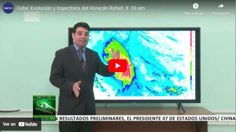 Rafael mantiene un desplazamiento hacia el noroeste cerca de 22 kilómetros por hora (km/h) y prevén un movimiento general hacia el noroeste durante las próximas horas, seguido de un giro gradual hacia el oeste-noroeste en el Golfo de México.