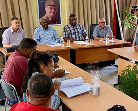 Esteban Lazo, presidente de la Asamblea Nacional del Poder Popular de Cuba (Parlamento), intercambió hoy con una brigada de trabajadores de la Empresa Geominera Camagüey, que labora en el municipio de Guáimaro, como parte de la actual visita parlamentaria a esta provincia.