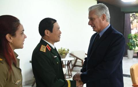 “El Presidente @DiazCanelB se reunió con el general de ejército, miembro del Comité Central del Partido Comunista de Vietnam, miembro permanente de la Comisión Militar Central, jefe del Estado Mayor General del Ejército Popular, viceministro de Defensa, Ngyen Tan Cuong”.