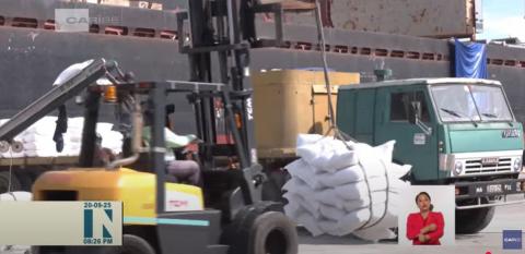 Brigadas de la Terminal portuaria Andrés González Lines realizan la descarga continua, de un #Buque que transportó a Cuba, Diecinueve mil toneladas de Arroz, para la canasta básica de la población. La Operación es asumida por el Grupo Marítimo del Ministerio del Transporte y Equipos de Trabajo, del Ministerio de Comercio Interior.