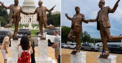 Una estatua que representa al presidente de Estados Unidos, Donald Trump, y al financiero Jeffrey Epstein de la mano apareció este martes en el National Mall, frente al Capitolio en Washington.
