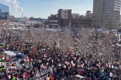 Con temperaturas bajo cero y nieve, miles de personas salieron ayer a las calles de la ciudad estadounidense de Minneapolis y marcharon contra el reciente aumento de la presencia de agentes federales en Minnesota.