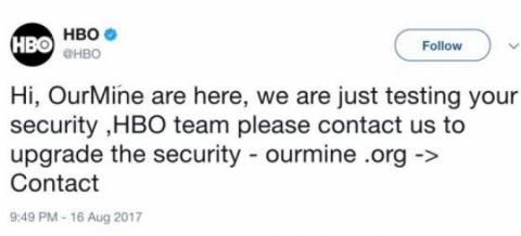 "Hola, OurMine está aquí, sólo estamos poniendo a prueba su seguridad, equipo de HBO por favor contáctenos para incrementar la seguridad", fue el mensaje que se pudo ver en la cuenta oficial de la HBO en Twitter durante la tarde del miércoles (hora local).