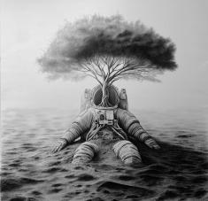 El rescate del dragón. Técnica mixta sobre lienzo. 170 x 270 cm.