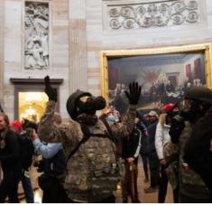 Un cartel conmemorativo instalado en la sede del Congreso de EE.UU. en Washington D. C. el día de la despedida del oficial Brian Sicknick, 2 de febrero de 2021. Foto: Gettyimages.ru