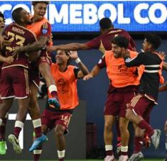 Venezuela celebra su pase a cuartos de final de la Copa América al vencer a México por 1-0 el 26 de junio de 2024 en Inglewood, California Patrick T. Fallon / AFP