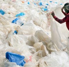 Un trabajador extiende bolsas de plástico en un área abierta junto al río para que se sequen al sol, Daca, Bangladés. NurPhoto / Gettyimages.ru