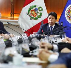 El presidente de Perú, Pedro Castillo, durante una reunión con el Grupo de Alto Nivel de la Organización de Estados Americanos (OEA. Foto: PRESIDENCIA DE PERÚ (PRESIDENCIA DE PERÚ / EFE)