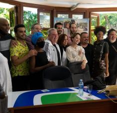 El director rodeado de parte de su elenco.