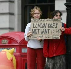 Londres no quiere a Trump", claman unas manifestantes que rechazan la visita a Reino Unido del presidente de Estados Unidos, Donald Trump, el 17 de septiembre de 2025 en la capital británica (Justin Tallis)