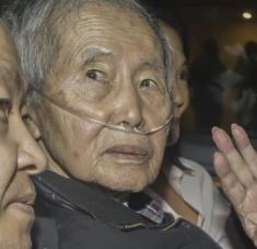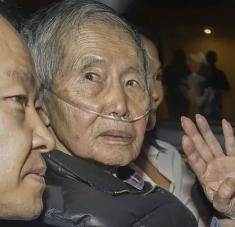 El expresidente de Perú (1990-2000) Alberto Fujimori sentado entre sus hijos Kenji (I) y Keiko a su salida de la prisión de Barbadillo, en las afueras de Lima, el 6 de diciembre de 2023 © Renato PAJUELO / AFP