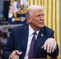 Un activista que muestra al juez brasileño Alexandre de Moraes y al presidente estadounidense Donald Trump, durante una protesta en defensa de la soberanía nacional tras la suba arancelaria y las sanciones de Estados Unidos a Brasil, cerca del consulado de Estados Unidos, en Sao Paulo, Brasil, el 1 de agosto de 2025. (NELSON ALMEIDA) (NELSON ALMEIDA/AFP/AFP)
