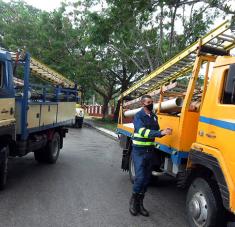Brigadas de apoyo humanitario integradas por trabajadores de unidades constructoras estatales, laboran en el desvío alternativo paralelo al tramo conocido como Acopio, para acceder al poblado de Macambo, una de las comunidades severamente afectada por la tormenta tropical Oscar, en el municipio Imías, en Guantánamo, Cuba, el 24 de octubre de 2024. ACN FOTO/ Lorenzo CRESPO SILVEIRA
