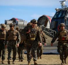 Una lancha de desembarco de la Marina de EE.UU. realiza maniobras de entrenamiento frente a la costa de Punta Guilarte, en Arroyo, Puerto Rico, el 5 de septiembre de 2025 Foto: Gettyimages.ru
