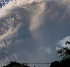 La espectacular columna de cenizas del volcán La Soufriere se desplaza en dirección al noreste hacia el oceáno Atlántico. Foto: Twitter: Ralph Gonsalves