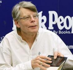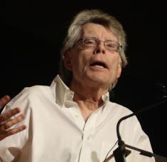 En esta combinación de fotografías la portada de "Later", izquierda, y el autor Stephen King. Los lectores lo conocen por “Carrie”, “The Shining” (“El resplandor”) y otros libros populares identificados comúnmente como “terror”, pero King ha tenido por mucho tiempo afinidad por otro tipo de narración de ciencia ficción y drama carcelario a los Medias Rojas de Boston.
