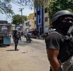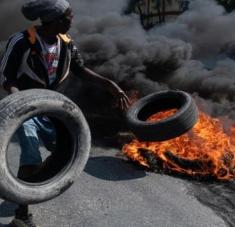 Personas llevan un ataúd falso con una foto del primer ministro de Haití, Ariel Henry, y las banderas de Estados Unidos y Canadá adheridas durante una protesta en la que se exige su dimisión tras semanas de escasez en Puerto Príncipe, Haití, el 17 de octubre de 2022. REUTERS - RICARDO ARDUENGO
