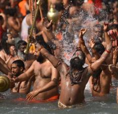Baños religiosos por la festividad de Kumbh Mela en Haridwar, India (foto: ANSA)